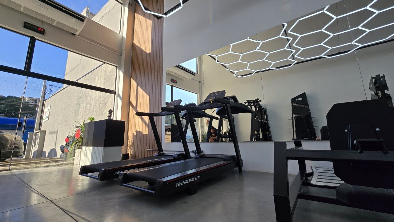 Equipamentos novos, espaço amplo e climatizado para treinos mais confortáveis e organizados.
